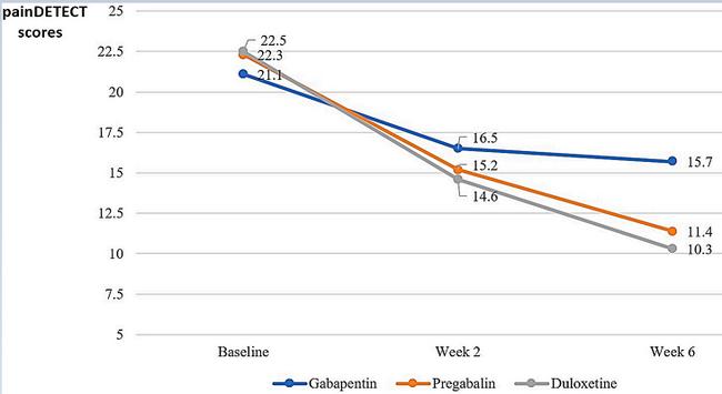 이들 3가지 약제는 당뇨병성 말초신경병증 관리에 흔히 사용되는 약물로 △둘록세틴과 프레가발린이 6주 치료 후 통증완화 효과가 우수했으며 △당화혈색소(HbA1c) 수치가 8.7 이상인 환자에게는 프레가발린 또는 가바펜틴이, 10.7 이상인 환자에게는 프레가발린이 적합하고△당 조절이 잘 된 환자에게는 둘록세틴이 효과적이었다.