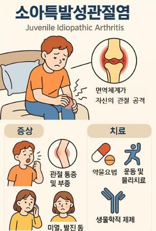 소아 류마티스질환 중 가장 흔한 소아특발성관절염(Juvenile Idiopathic Arthritis, JIA)은 16세 미만 소아에게 발생하는 만성 염증성 관절질환으로, 관절이 붓고 아프며 움직임이 제한되는 증상이 6주 이상 지속되는 게 특징이다. 아이가 이유 없이 오래 걷기를 싫어하거나, 아침에 관절이 뻣뻣하다고 호소한다면 이 질환을 의심할 수 있다. 일부 유형에서는 눈에 염증이 생겨 시력 저하로 이어지기도 한다.