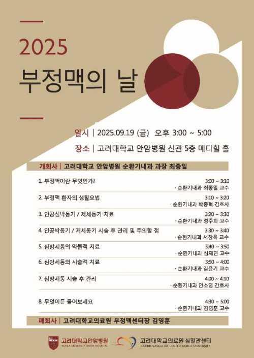 고려대 안암병원 '부정맥의 날' 건강강좌 9월 19일 오후 3시 개최