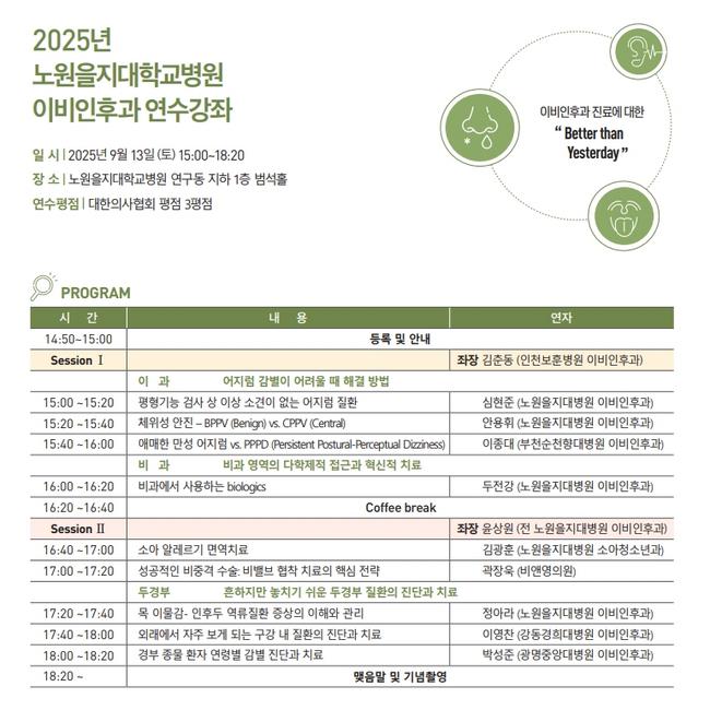 2025년 노원을지대병원 이비인후과 연수강좌 프로그램