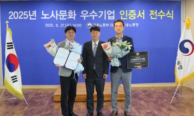 ‘노사문화 우수기업’은 고용노동부가 주최하고 노사발전재단이 주관하는 제도로, 상생의 노사협력과 사회적 책임을 실천하는 기업을 발굴·지원한다. 올해는 대기업 13곳, 중소기업 19곳, 공공기관 8곳 등 총 40개사가 선정됐다.