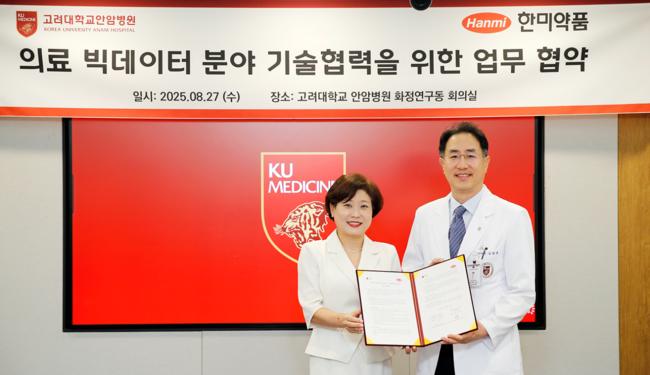 고려대 안암병원과 한미약품㈜은 8월 27일 오후 1시 30분, 의료 빅데이터 분야 협력을 위한 양해각서(MOU)를 체결했다고 밝혔다. 이번 협약을 통해 양 기관은 의료 데이터 분석 인재 양성, 공동연구 추진, 국책·민간 연구사업 연계 등을 중심으로 상호 협력체계를 구축하기로 했다.