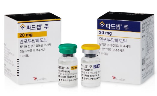 한국아스텔라스의 ‘파드셉’(성분명: 엔포투맙 베도틴)과 펨브롤리주맙(한국MSD ‘키트루다’) 병용요법이 영국 국민보건서비스(National Health Service, NHS)로부터 전이성 요로상피암의 1차 치료에 대한 급여 승인을 지난달 21일(현지시각) 받았다. NHS는 이날 “생존 기간 2배 늘린 혁신적인 파드셉 1차 병용요법, 방광암 환자들을 위한 새 희망”이라는 제목으로 급여 결정을 발표했다.