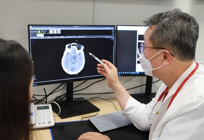 순천향대 부천병원 응급실 의료진이 CT 영상을 기반으로 뇌졸중 환자의 상태를 예비 선별하고 있다. 순천향대 부천병원, 의료 AI 진단기술 올들어 3개 프로그램 동시 도입 … 심장질환, 뇌졸중, 입원환자관리