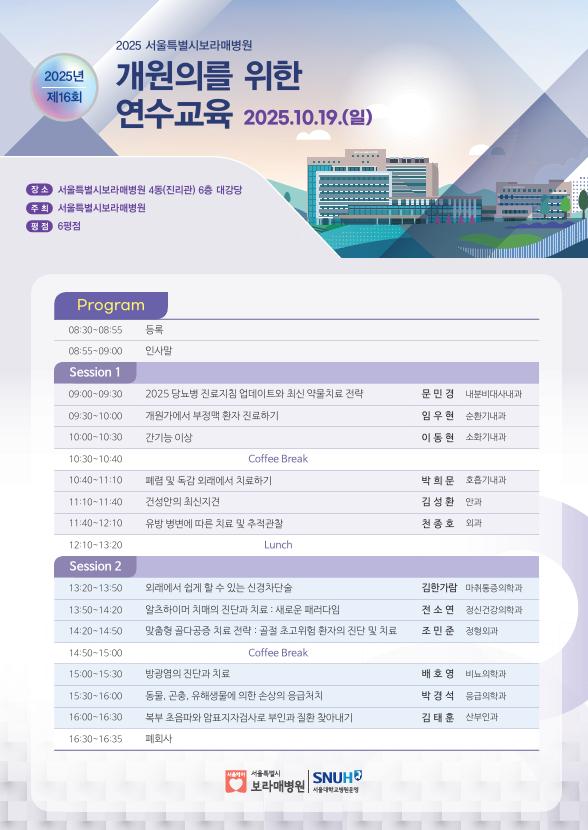 서울특별시보라매병원 ‘제16회 개원의를 위한 연수교육’ 타임라인
