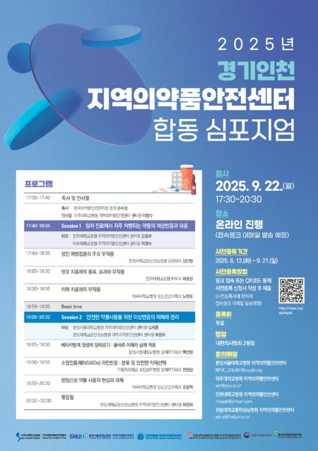이번 심포지엄은 의사, 약사, 간호사 등 보건의료인은 물론 일반 시민도 무료로 참여할 수 있으며, 등록은 안내 포스터의 QR코드 또는 링크를 통해 가능하다.