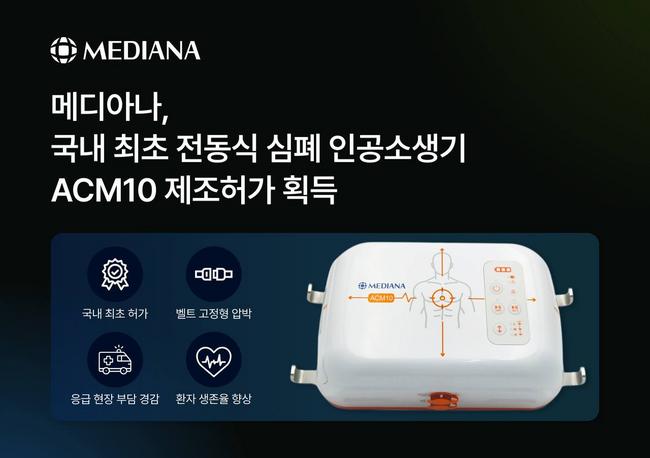 메디아나가 국내 최초로 전동식 심폐 인공소생기 'ACM10' 제조허가를 획득했다.