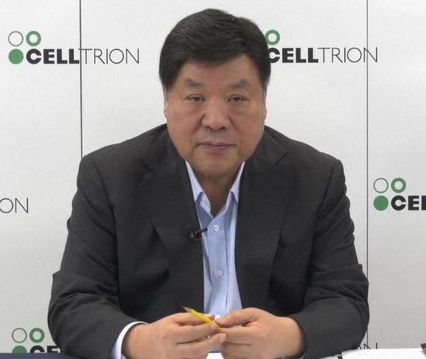 서정진 셀트리온 회장이 23일 온라인 기자간담회에서 미국 공장 인수 배경을 설명하고 있다. (셀트리온 제공)