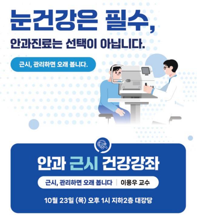 이번 강좌는 근시에 관심 있는 환자, 가족, 일반인 누구나 무료로 참석할 수 있으며 사전 신청 없이 현장에서 참여 가능하다.