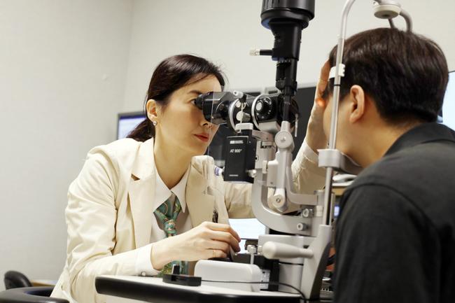 나경선 가톨릭대 여의도성모 안과병원장이 세극등 현미경으로 환자를 진료하고 있다.