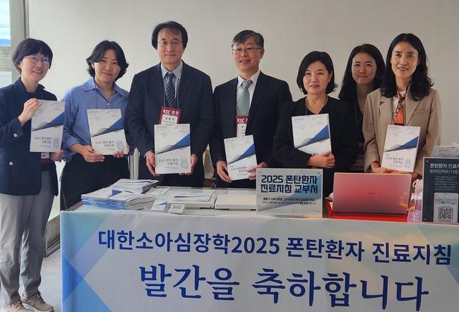 ‘2025년 대한심장학회 제69차 추계학술대회’에서 진행된 대한소아심장학2025 폰탄환자 진료지침 발간 축하 기념사진. 김수진 부천세종병원 소아청소년과장 (오른쪽 세 번째)