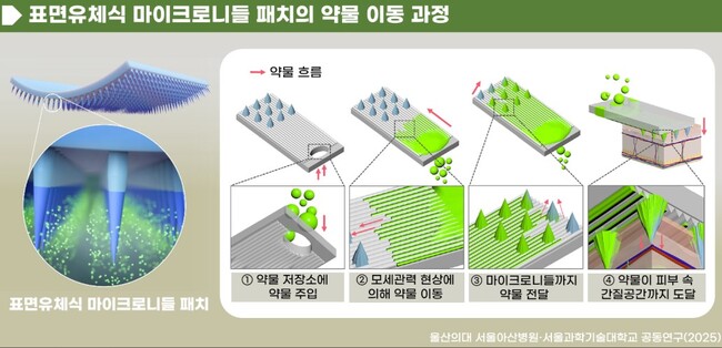 서울아산병원, 주사 없이 ‘패치 하나로’ 대용량 약물 주입하는 ‘표면유체식 마이크로니들 패치’ 개발