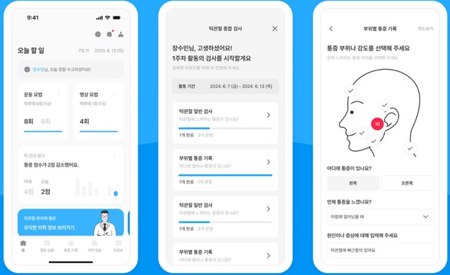 턱관절장애(TMD) 디지털 치료제 ‘클릭리스(Clickless)’가 휴대폰 앱에 구현된 모습
