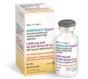 존슨앤드존슨의 ‘다잘렉스 파스프로’(DARZALEX FASPRO, 다잘렉스 피하주사, 성분명 다라투무맙, daratumumab and hyaluronidase-fihj)가 미국 식품의약국(FDA)으로부터 성인의 고위험 무증상 다발골수종(High-Risk Smoldering Multiple Myeloma, HR-SMM)에 대한 최초의 치료제로 지난 6일(현지시각) 승인받았다.