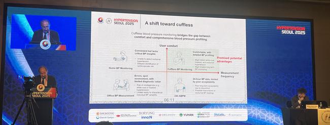 이 내용은 국내외 교수진이 대한고혈압학회 추계학술대회(KSH 2025)에서 발표한 것으로, 커프리스 혈압 측정 기술이 임상 영역의 새로운 패러다임으로 부상하고 있음을 보여줬다. 이번 학술대회는 11월 6일부터 8일까지 서울 콘래드호텔에서 열렸으며, 7일 기획 세션에서 잔프란코 파라티 이탈리아 밀라노-비코카대학 교수와 김지훈 삼성서울병원 순환기내과 교수가 ‘카트 비피’의 임상적 의미와 연구 결과를 공유했다.
