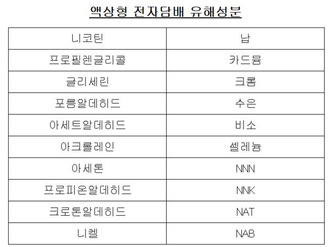 공개 대상 성분은 일반 담배(궐련형 전자담배 포함)가 니코틴·타르·일산화탄소·벤젠 등 44종, 액상형 전자담배가 니코틴·포름알데히드·아세트알데히드 등 20종이다.
