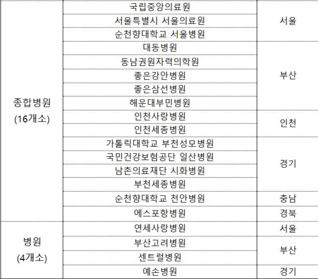 종합병원 패널 16개소. 일반병원 패널 4개소