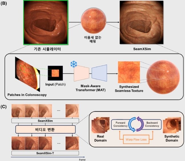 박창민·이동헌 서울대병원 영상의학과 교수팀(장승현·김이삭 연구원)과 임종필 소화기내과 교수팀은 대장내시경 영상을 학습시켜, 실제와 유사한 시각적 경험을 제공하는 AI 기반 내시경 시뮬레이터 ‘SeamXSim’를 개발했다.