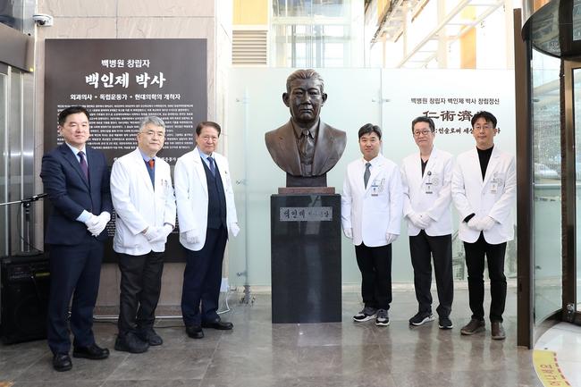 인제대 일산백병원은 12월 2일 병원 본관 1층에서 백병원 창립자 백인제 박사 흉상 제막식을 개최했다. 이번 행사는 백 박사의 인술제세 정신과 설립 이념을 기리고, 백병원의 정체성과 역사적 가치를 구성원들과 공유하기 위해 마련됐다.