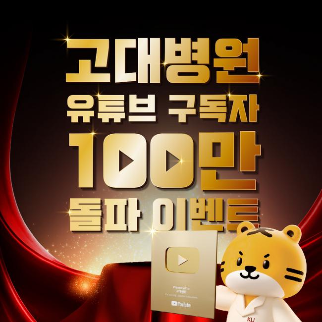 고려대의료원 유튜브 채널 '고대병원' 구독자 100만 돌파 기념 감사 이벤트 홍보 이미지