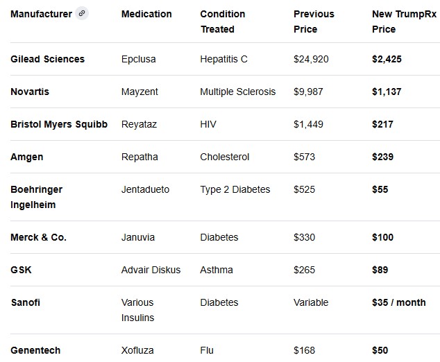 트럼프 대통령은 지난달 19일 암젠(Amgen), 브리스톨마이어스스큅(BMS), 베링거인겔하임, 제넨텍(로슈), 미국 머크(MSD), 길리어드사이언스(Gilead Sciences), 사노피(Sanofi), 노바티스, 글락소스미스클라인(GSK) 등 9개 제약사와 약가 인하 협상을 타결했다고 발표했다.