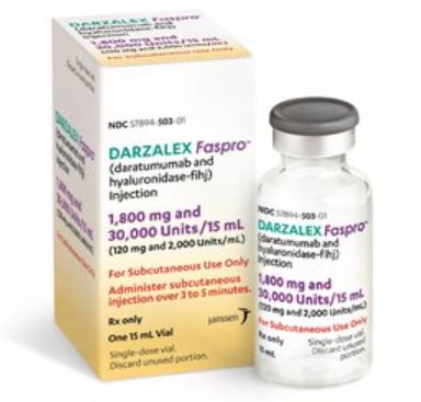 존슨앤드존슨(얀센파마슈티컬)은 ‘다잘렉스 파스프로’(Darzalex Faspro, 다라투뮤맙+히알루로니다제-fihj, Daratumumab+Hyaluronidase-fihj 성분 피하주사)가 미국 식품의약국(FDA)으로부터 적응증을 추가 승인받았다고 27일(현지시각) 발표했다.