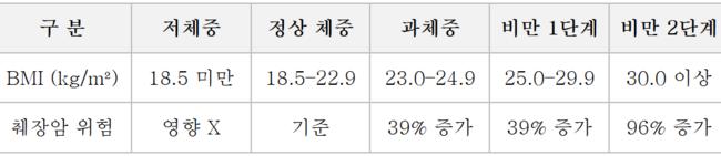 • 과체중 때부터 췌장암 발병 위험 39% 증가 … BMI 30 이상 고도 비만이면 96% 증가