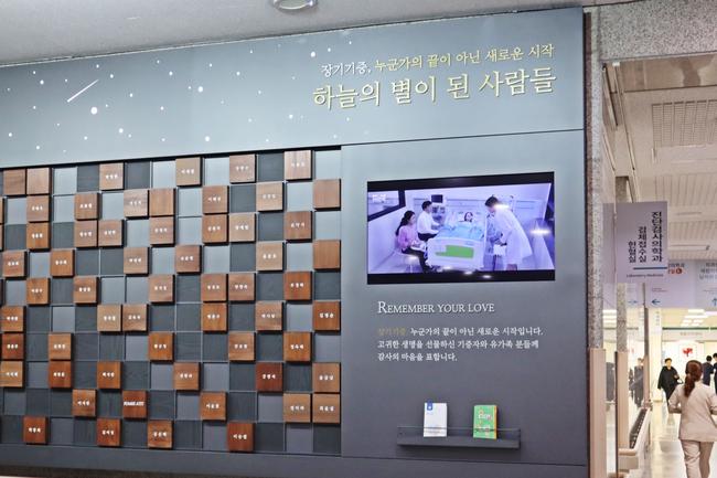 인하대병원 본관 2층에 위치한 장기이식 기증자 추모현판