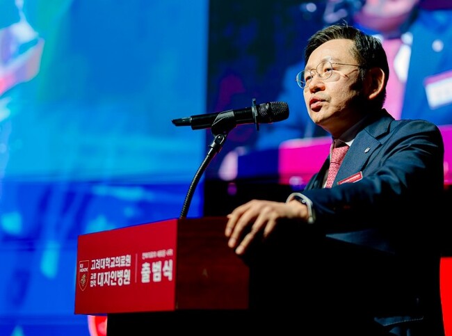 2일 고려대의료원-대자인병원 간 교류협력 출범식에서 윤을식 의료원장이 “상급종합병원이 보유한 고난도 중증질환 수술과 암 진료, 연구·교육 역량을 지역 의료기관과 공유해 중증·필수의료가 지역에서도 안정적으로 작동하는 구조를 만들겠다”고 다짐하고 있다.