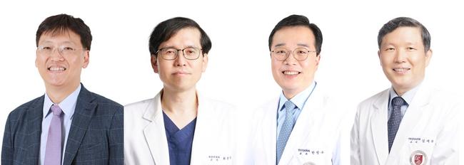 김진원 고려대 의대 내과학교실(순환기내과) 교수, 최경묵 내과학교실(내분비내과) 교수, 한창수 정신건강의학교실 교수, 김재환 마취통증의학교실 교수 (왼쪽부터)