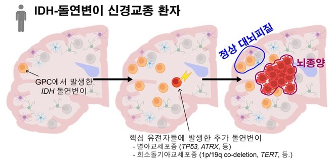 난치성 IDH-돌연변이 신경교종, 대뇌피질 내 교세포전구세포(GPC)에서 기원