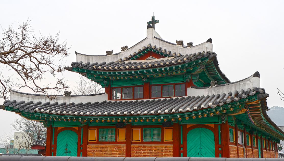 팔작 지붕 꼭대기에는 궁궐 지붕 양식에 쓰였던 잡상(雜像)과 비슷한 조형물이 장식돼 있고 꼭대기에 십자가가 세워져 있다. 또 중문과 외벽 및 창문 등에 태극 문양과 십자가 문양이 조화롭게 어우러지면서 독특한 아름다움을 발산한다. 기독교가 조선민중에게 자연스럽게 다가가고자 했던 노력이 성당 건축에서도 엿보인다.