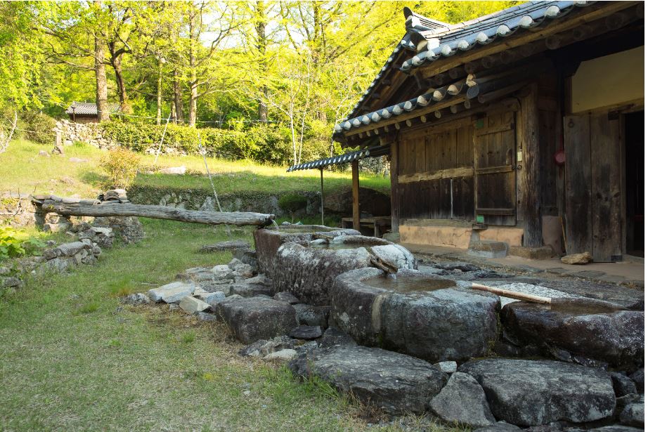 조계산 선암사 계곡에서 발원한 물은 야생차밭을 거쳐 통나무를 타고 수각으로 흘러드는 물이니 얼마나 귀하겠는가. 그중에서도 첫 번째 네모난 수각에 담긴 물은 부처님께 바치는 청수나 차를 다릴 때 사용된다. 두번째 타원형 수각 물은 먹는 물이다. 세 번째 큰 둥근 수각의 물로는 쌀이나 과일을 씻는다. 마지막 수각의 물은 허드렛일에 사용한다.