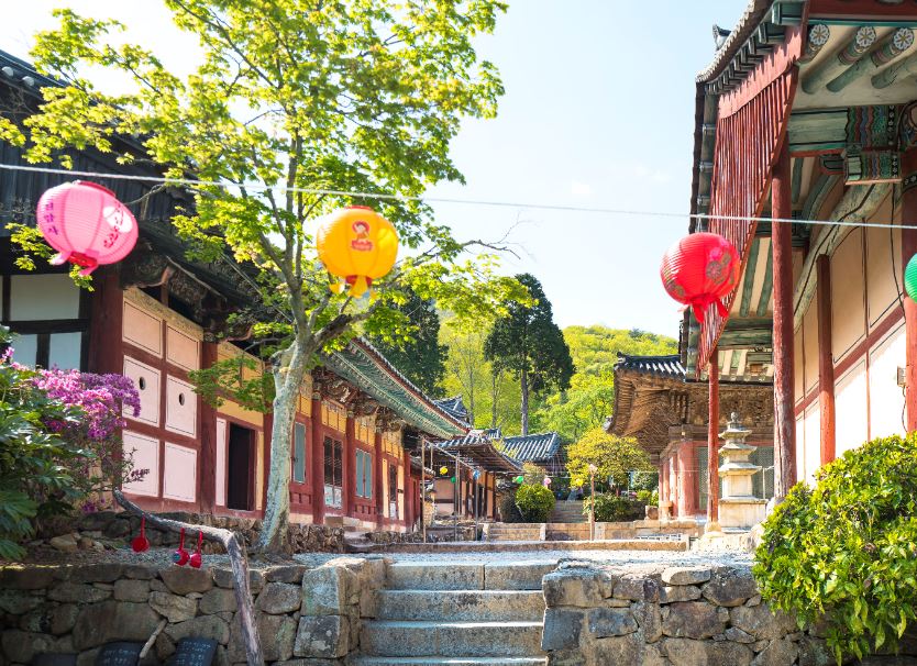 대웅전 영역은 대웅전과 맞은편의 만세루, 좌우의 선불당과 심검당, 중정에 세워진 통일신라 때 조성된 탑 2기, 지장전과 응향각 등을 일컫는다.