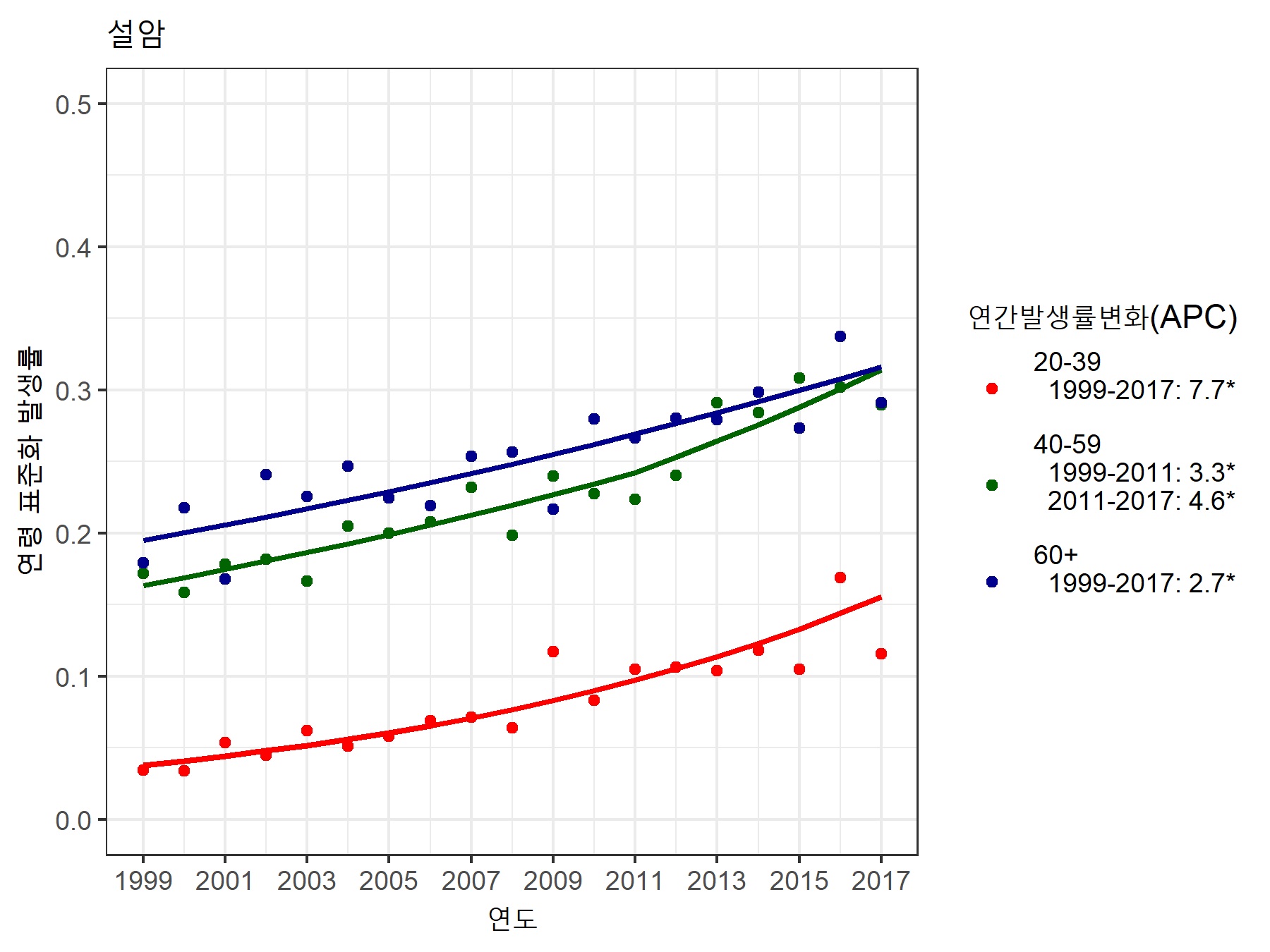 설암 연령대별 발생률 변화. (건국대병원 제공)