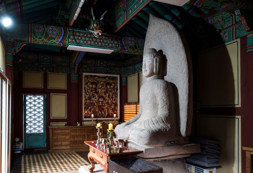 해탈문을 들어서면 널찍한 절 마당과 5층석탑을 비롯해 대웅보전, 명부전 등의 전각들이 한눈에 들어온다. 압권은 역시나 뒤편에 호위무사처럼 버티고 있는 월출산이다. 10월말~11월초 영암에서는 국화축제가 벌어지는 데 도갑사에도 국화가 가득하다. 탐스러운 국화로 장식된 ‘도갑사 5층석탑’도 여느 때보다 화사하게 보인다. 고려시대에 조성된 이 탑은 위쪽으로 올라가면서 몸체들이 낮아져서 안정감이 느껴진다. 석가모니 부처와 좌우에 아미타불과 약사여래불을 모신 대웅보전과 도선국사의 영정이 모셔져 있는 조사전 등이 있다.