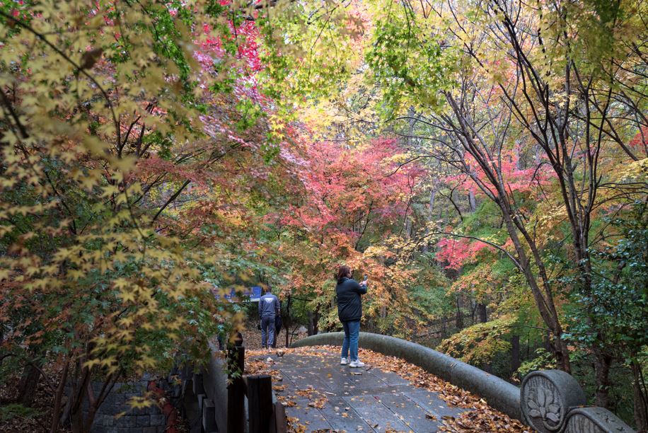 도갑사 용수폭포에서 미륵전으로 가는 돌다리길의 단풍 터널. 변영숙 제공