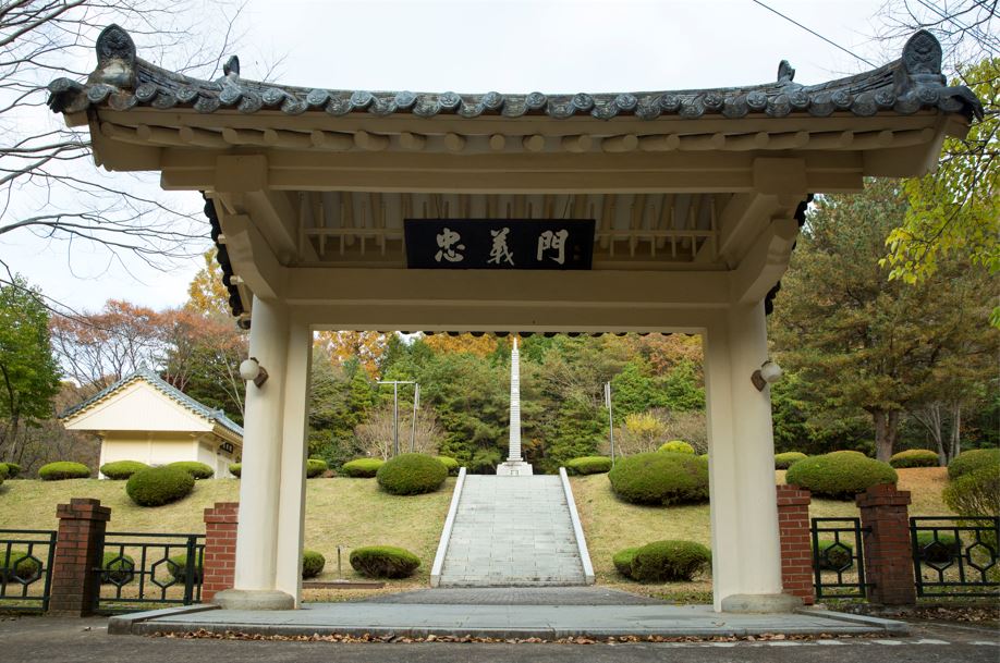 한국전쟁 당시 전남 곡성군에서 북한군과 교전하다 순직한 경찰 48명을 기리는 경찰충혼탑(뒤)과 충의문. 변영숙 제공