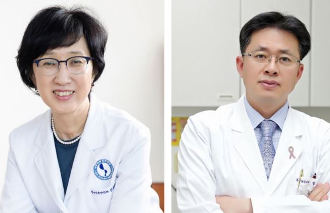 전미선 아주대병원 방사선종양학과 교수(왼쪽)와 강석윤 종양혈액내과 교수. (아주대병원 제공)