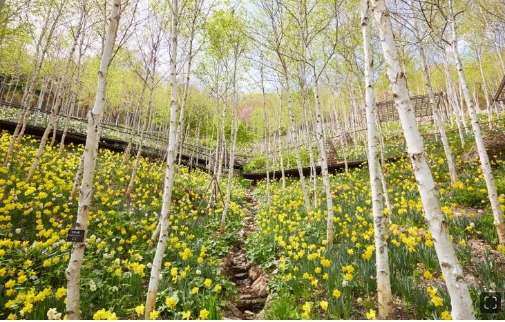 화담숲 자작나무숲에 활짝 핀 수선화 / 화담숲 제공