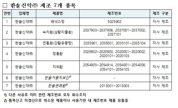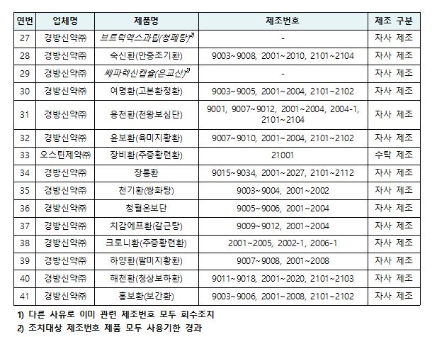 이번 조치는 업체 내부자의 고발과 식약처 자체 기획으로 해당 2개 제조업체에 대해 현장점검을 실시한 결과 △제조방법 임의 변경 △변경신고를 하지 않고 첨가제 등 변경 △제조기록서 거짓 작성 등 ‘약사법’ 위반사항을 확인한 데 따른 조치다.이에 따라 식약처는 ‘의약품 안전성 속보’를 의·약사와 소비자 단체에 배포해 조치대상 48개 의약품에 대한 사용을 중지하고 유통품의 신속한 회수 등 협조를 요청했다.