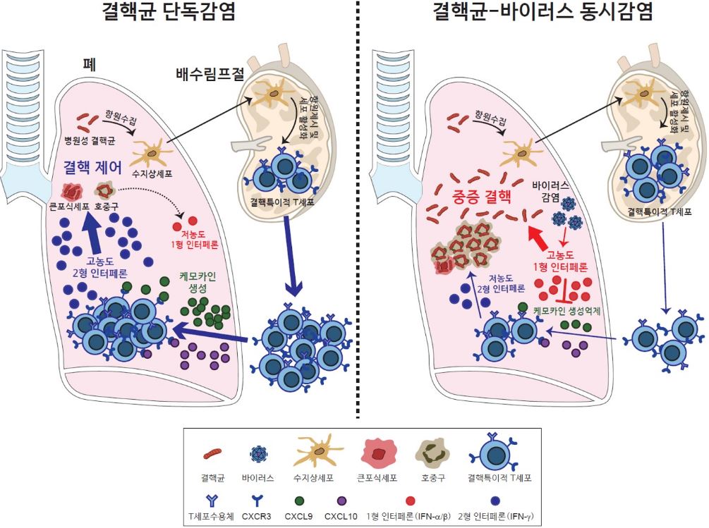 결핵균 감염 이후 바이러스에 감염됐을 때, 결핵이 악화돼 중증 결핵으로 진행되는 면역학적 기전과 원인이 밝혀졌다. 이번 연구로 결핵 환자의 치료와 차세대 결핵백신 개발의 기반과 이해를 제공할 수 있을 것으로 기대된다.