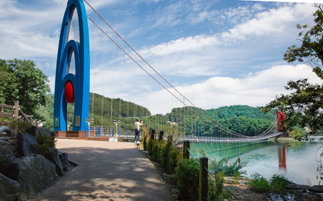 2009년 완공 당시 길이가 207m로 국내 최장이자 아시아에서 두 번째로 긴 다리로 화제를 모았다. 출렁다리 주탑은 청양을 상징하는 붉은색 고추 3개를 모아놓은 형태다. 세계에서 제일 큰 고추라 할 것이다.