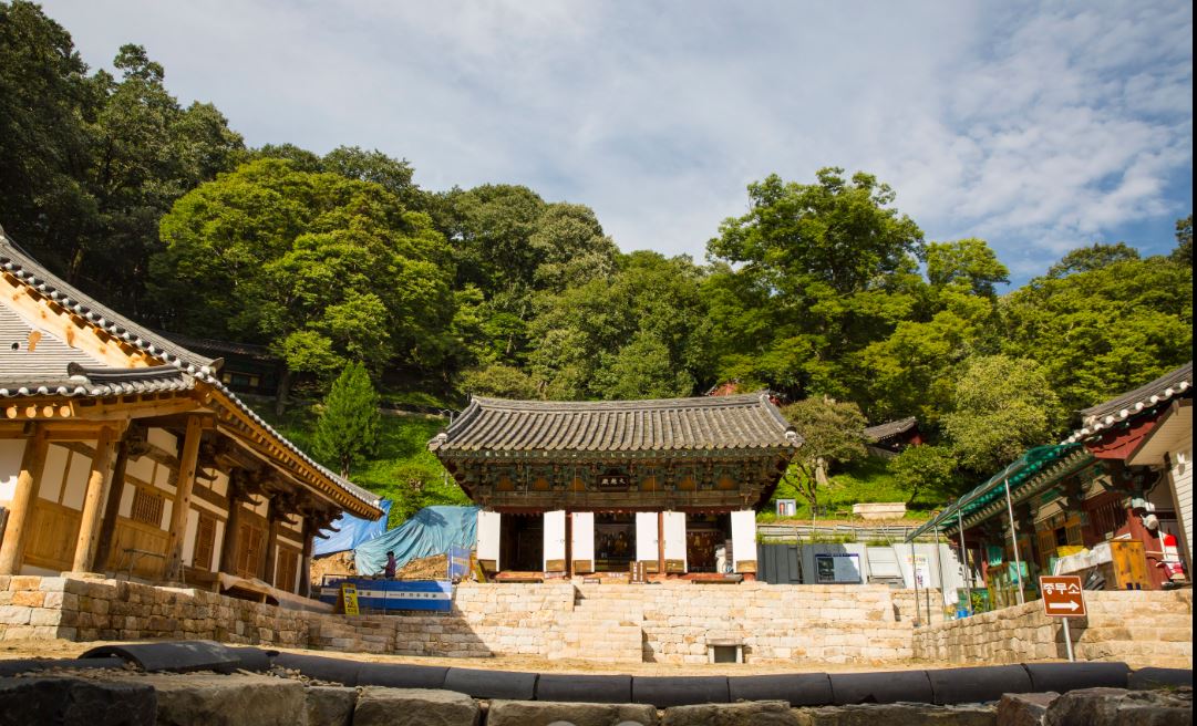 한창 공사가 진행 중인 축대 아래 하대웅전이 다소곳하게 서 있다. 정면 3칸에 측면 2칸의 단층 맞배지붕을 한 하대웅전은 조선 중기 건물이다. 쇠붙이를 하나도 사용하지 않고 지은 목조 건물로 새삼스레 한 번 더 돌아보게 만든다.