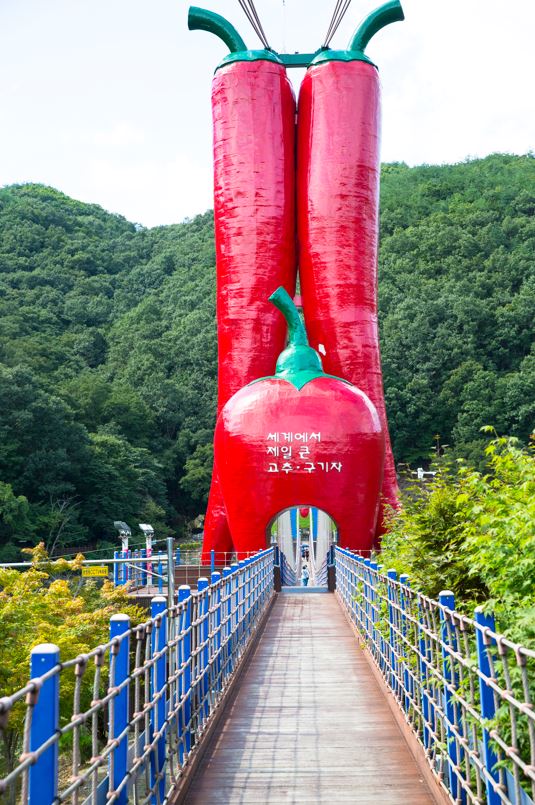 청양고추를 상징하는 청양군 천장호 출렁다리 주탑/ 변영숙 제공