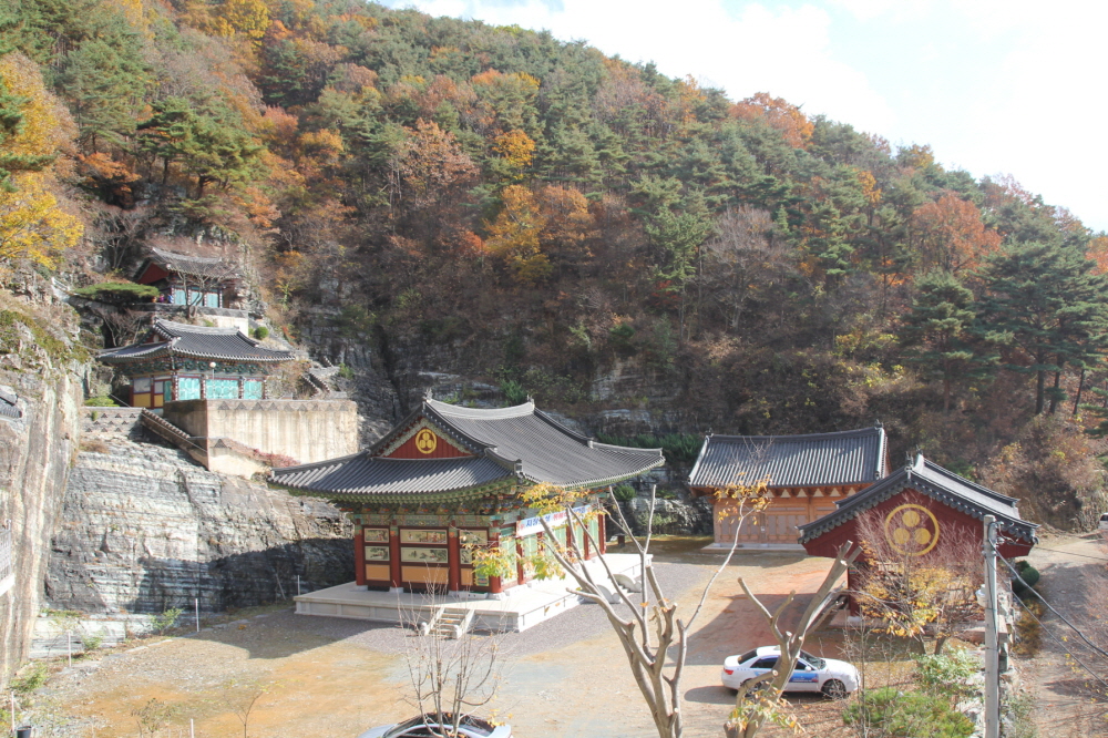 이 절의 기반은 중생대 백악기에 형성된 수천 수만겹 퇴적 구조의 절벽이다. 절 마당 높은 축대도 가파른 계단도 퇴적암 판석들을 쌓아 올린 것이다. 시루떡처럼 쌓인 바위 속에 든 아득한 세월이 묻혀 있다.
