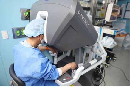 첫 수술은 이날 이정재 병원장(산부인과 교수)이 집도했다. 기존 다빈치Xi 장비는 3~4개 정도의 절개창을 만들어 수술했지만 다빈치SP는 구멍을 하나만 뚫고도 수술할 수 있다. 하나의 로봇팔로 수술 기구 3개와 3차원 고화질 카메라 등을 수술 부위까지 넣을 수 있어 좁고, 깊은 부위에 수술하는 데 도움이 된다.