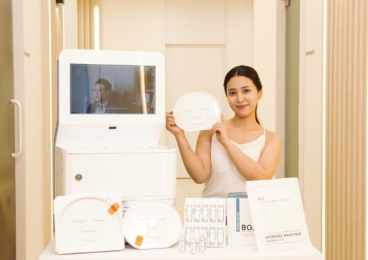 '스킨 젤 메이커'는 비지에스코스메틱이 60억 원의 연구개발비를 투자해 개발한 첨단 뷰티테크 제품으로, 개인 피부컨디션에 맞게 20여 가지 기능성 앰플을 조합해 '고보습 하이드로겔 마스크팩'을 즉시 만들어주는 마스크팩 제조기다. 물에 녹는 수용성 소재를 사용해 환경오염을 유발하지 않는 친환경 ESG 마스크팩인게 특징이다.