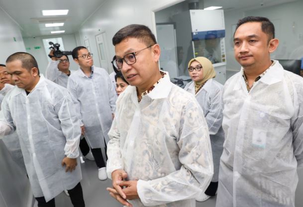타루나 이크라르 인도네시아 식약처장이 대웅바이오로직스 인도네시아 줄기세포 공장을 둘러보고 있다.