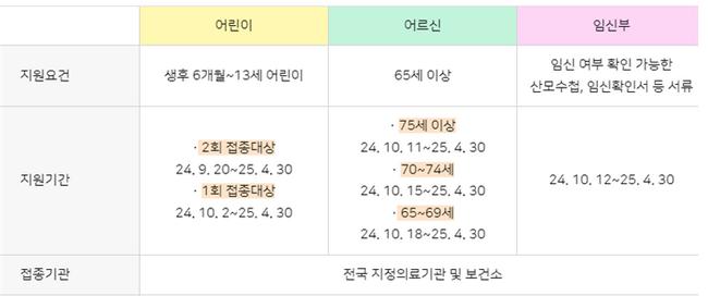 2024~2025절기 코로나19 및 인플루엔자 국가필수예방접종(NIP)이 지난 9월 20일부터 내년 4월 30일까지 순차적으로 진행된다.